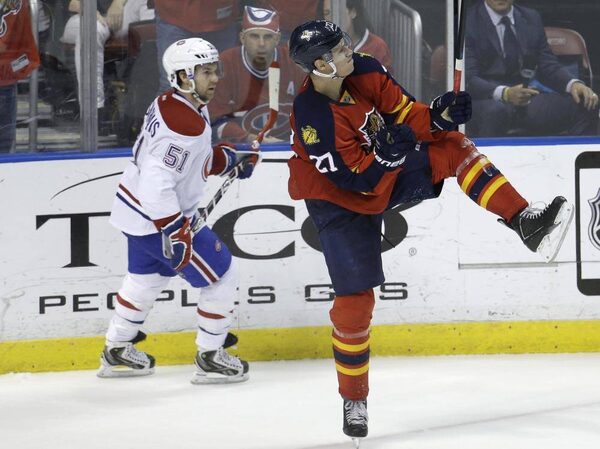 Florida Panthers center Nick Bjugstad reacts after scoring a goal against the Montreal CanadiensLynne Sladky/The Associated Press