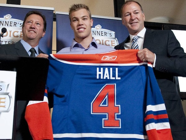 With eyes fixed on the future, the Edmonton Oilers reached into their storied past Wednesday as president of hockey operations Kevin Lowe presented Taylor Hall with jersey No. 4.