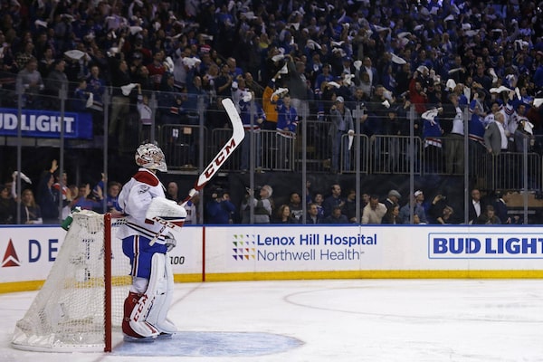 Montreal Canadiens goalie Carey Price, after giving up a goal to the New York Rangers during Game 6 on April 22, 2017, in New York.Adam Hunger