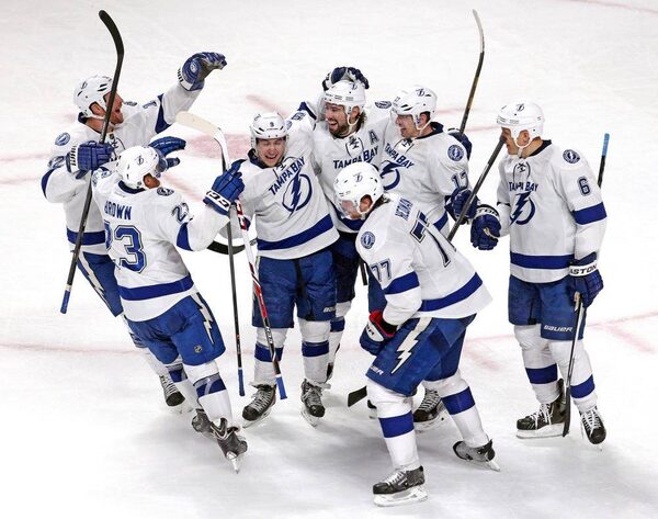 Tampa Bay Lightning celebrate their win against Montreal Canadiens after an overtime period at Bell Centre.Jean-Yves Ahern