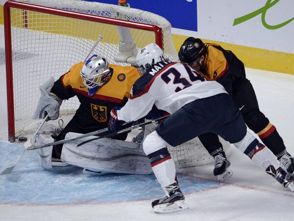 Team USA's Auston Matthews scores the first goal on Germany goaltender Ilya Sharipov during first period preliminary round hockey action at the IIHF World Junior Championship in Montreal on December 28, 2014.Ryan Remiorz/The Canadian Press