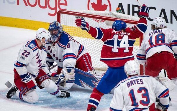 Tomas Plekanec celebrates a goal against the New York Rangers.Paul Chiasson/The Canadian Press