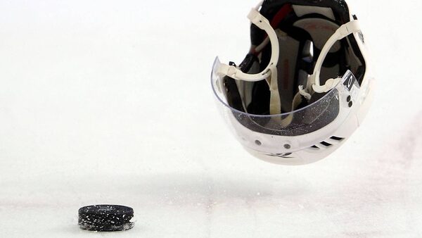 A hockey puck hits a helmet during play between the Calgary Flames and Dallas Stars at American Airlines Center on January 27, 2010 in Dallas, Texas. (Photo by Ronald Martinez/Getty Images)Ronald Martinez/Getty Images