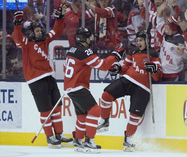 Canada learned any team is vulnerable to a hot goaltender in a single-elimination tournament as Godla was spectacular in stopping 39 of the 44 shots he faced. But Nic Petan had a hat trick, Shea Theodore and Anthony Duclair each added a goal, Connor McDavid recorded three assists and Zach Fucale made 14 saves to ensure the end of Canada's world junior medal drought that dated back to 2012.