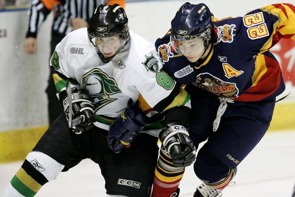 The London Knights’ Patrick Kane, left, battles with Zack Torquato of the Erie Otters in 2007. Despite being from Buffalo, Kane opted to play in the OHL because he saw it as his best personal fit. Now a two-time Stanley Cup winner with the Chicago Blackhawks, Kane says the only thing he regrets about his junior hockey experience is it didn’t last longerDAVE CHIDLEY/The Canadian Press