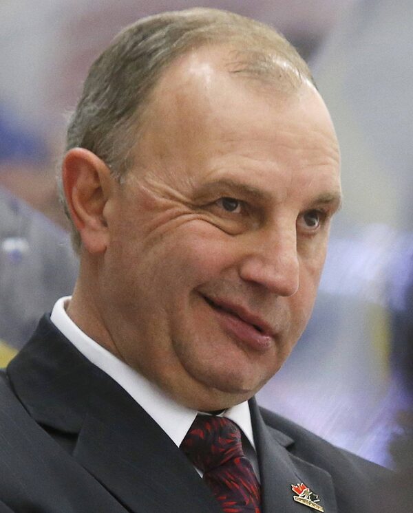Canada's head coach Brent Sutter reacts while watching his team play SlovakiaReuters