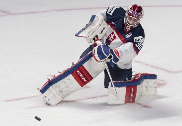 Slovakia goaltender Denis Godla clears the puckPaul Chiasson/The Canadian Press