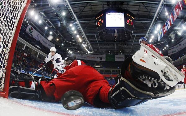 Czech Republic's goalie Matej Machovsky lets a goal in by Team USA's John Gaudreau (not seen) during the second period of their quarter-final game at the 2013 IIHF U20 World Junior Hockey Championship in Ufa, January 2, 2013.Mark Blinch/The Canadian Press