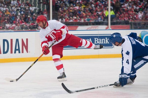 A photographic look at the Toronto Maple Leafs and Detroit Red Wings in action at Michigan Stadium in Ann Arbor, Mich. and the Alumni Showdown game at Comerica Park in Detroit