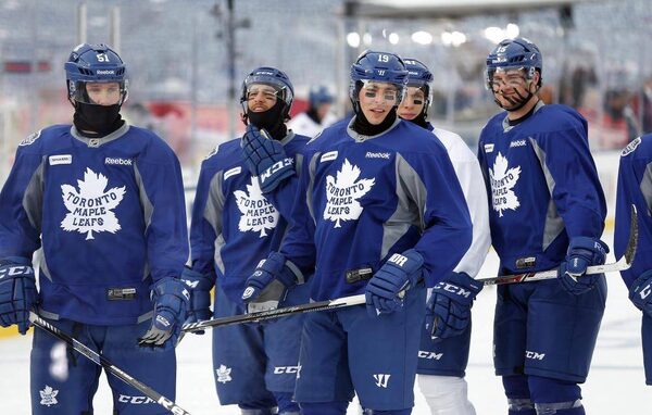 Members of the Toronto Maple Leafs take the ice for practice the day before the Winter Classic hockey game against the Detroit Red Wings at Michigan Stadium.JERRY LAI
