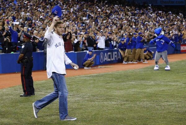 Toronto Blue Jays former pitcher Roy Halladay tips his hat to the crowd before throwing out the first pitch before the Blue Jays play the New York Yankees in their American League baseball game in Toronto, Friday April 4, 2014.Mark Blinch/The Globe and Mail