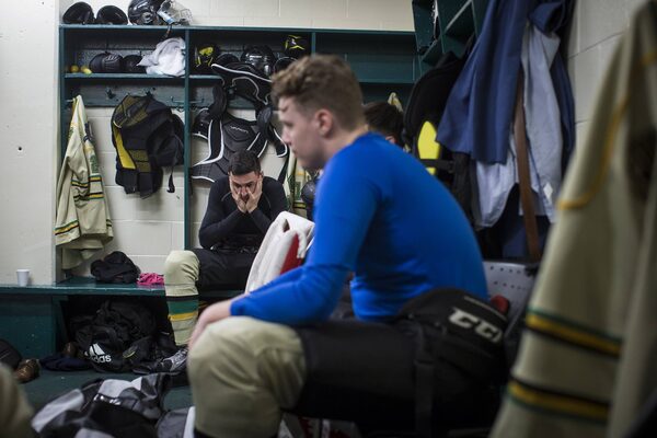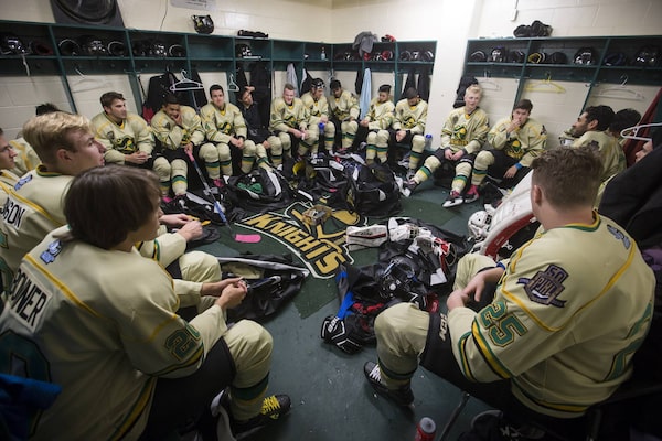 Surrey Knights players sit in the dressing room before a PJHL hockey game against the Aldergrove Kodiaks in Surrey, B.C.Darryl Dyck/The Globe and Mail