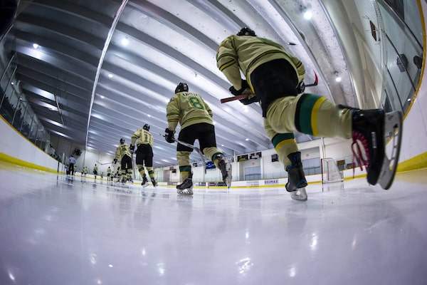 Surrey Knights players skate onto the ice for the second period against the North Vancouver Wolf Pack in Surrey, B.C.Darryl Dyck/The Globe and Mail