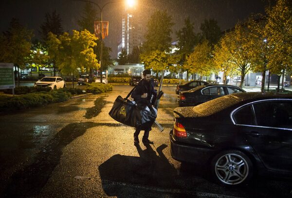 Surrey Knights' goalie Zakery Babin carries his gear to his car after losing to the Aldergrove Kodiaks 5-3, their 79th consecutive loss in Surrey, B.C.Darryl Dyck/The Globe and Mail