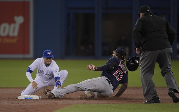 The Toronto Blue Jays short stop Troy Tulowitzki tags out Boston Red Sox Hanley Ramirez at second base.Fred Lum/The Globe and Mail