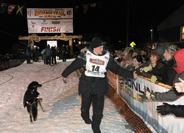 Day 10: Dallas Seavey greets fans after winning the 2014 Iditarod Trail Sled Dog Race in Nome, Alaska, Tuesday, March 11, 2014. Seavey finished the race with a time of eight days, 14 hours and 9 minutes, which is the total time needed to complete the trail, minus a mandatory 24 hour rest period. Seavey takes home the $50,400 purse, the winner’s share of prize money exceeding $650,000 and a Chrysler Ram truck.Bob Hallinen/The Associated Press