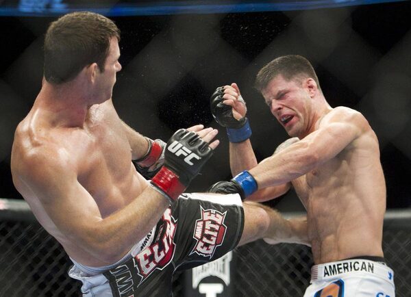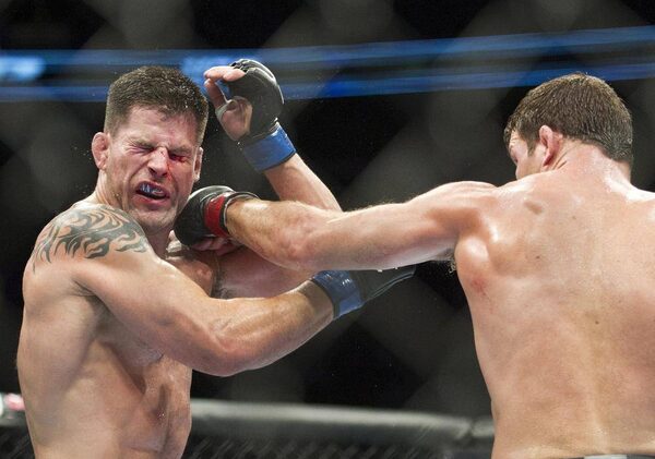 Michael Bisping, right, delivers punch to the face of Brian Stann during the middleweight bout at UFC 152 in Toronto on Saturday, Sept. 22, 2012.Nathan Denette/The Canadian Press