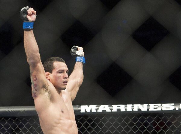 Mitch Gagnon, of Canada, reacts after defeating Walel Watson during the bantamweight bout at UFC 152 in Toronto on Saturday, Sept. 22, 2012.Nathan Denette/The Canadian Press