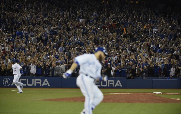 Fans erupt in excitement after Toronto Blue Jays catcher Russell Martin hit a three run homer giving the Jays a 4-0 lead over the New York Yankees at the Rogers Centre.Fred Lum/The Globe and Mail