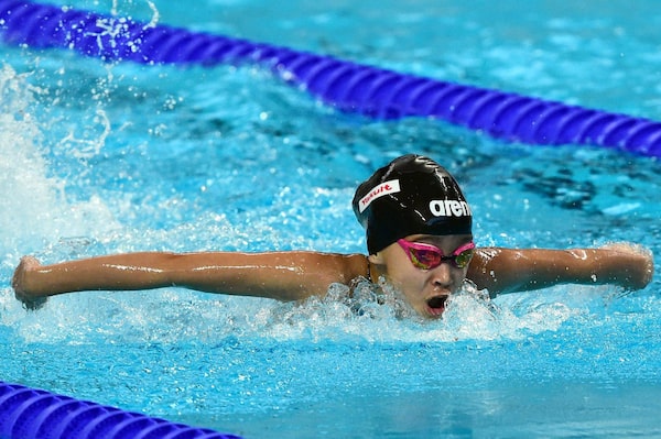 Alzain Tareq competes in a preliminary heat of the women's 50-metre butterfly event on Friday. Tareq trains five days a week in Manama, where she has access to 25- and 50-metre pools in the capital of the Persian Gulf nation, which has no swimming tradition.CHRISTOPHE SIMON/AFP / Getty Images