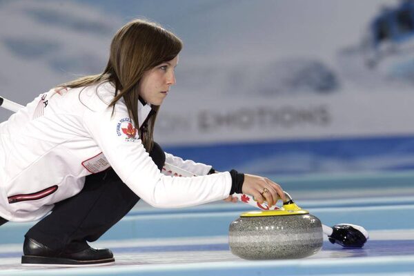 Canada's skip Rachel Homan delivers a stone during their World Women's Curling Championship semi-final match against Scotland in Riga March 23, 2013.INTS KALNINS/Reuters