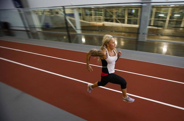 Bobsled driver Kaillie Humphries works out at the Winter Sport Institute in Calgary, Monday, Sept. 8, 2014.Jeff McIntosh/The Canadian Press