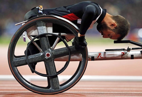 Canadian Brent Lakatos won a gold medal in the men’s T53 400-metres on Sunday at the world paralympic athletics championship. (file photo)EDDIE KEOGH/Reuters
