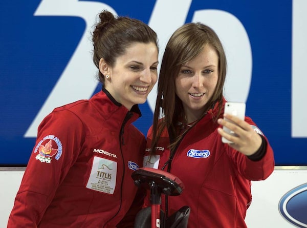 Canada's skip Rachel Homan, right, and lead Lisa Weagle pose for a picture during a practice session at the world women's curling championship in Riga, Latvia on Friday, March 15, 2013.Andrew Vaughan/The Canadian Press