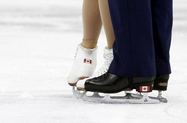 Canadian flags are seen on the figure skates in this file photo.LUCY NICHOLSON/Reuters