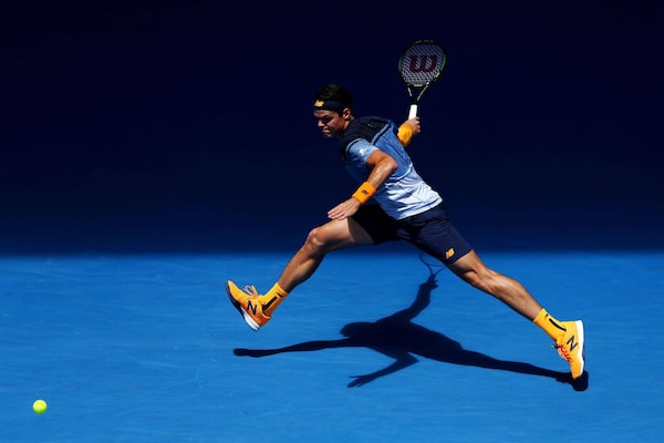 Milos Raonic of Canada plays a forehand in his third round match against Viktor Troicki of Serbia during day six of the 2016 Australian Open at Melbourne Park on January 23, 2016 in Melbourne, Australia.Cameron Spencer/Getty Images
