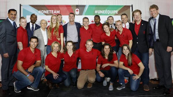 OneTeam: Bac row, from left, Bal Gosal, Kris Burley, Wade Davis, Helen Kennedy, Rosie Cossar, Jason Burnett, Mark Tewksbury, Eric Mitchell, Hank Palmer, Anastasia Bucsis, Patrick Burke, Vincent Lavoie, Chris Overholt, Curt Harnett and Scott Russell. Front, from left, Rudi Swiegers, Tessa Bonhomme, Nadine Rolland, Connor Taras, Charline Labonte and Sam Sendel