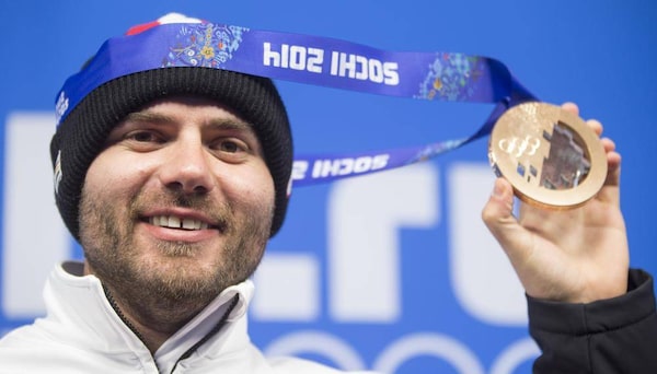 Jan Hudec with his bronze medal after placing third in super-G ending Canada's 20 year alpine drought after the medal ceremony at Olympic Park February 16, 2015 at the Sochi Winter Olympics.John Lehmann/The Globe and Mail