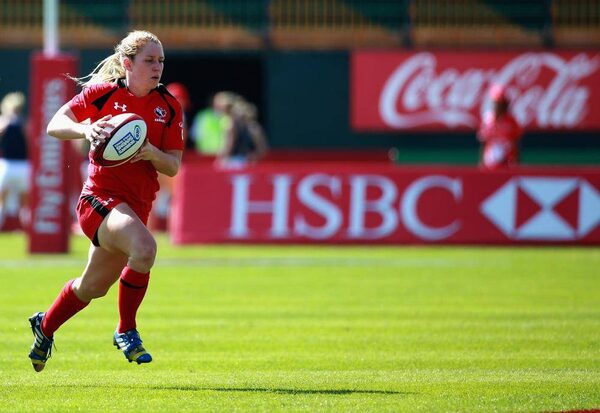 Kayla Moleschi of Canada in action against France during the IRB Women's Sevens Rugby World Series at the Emirates Dubai Rugby Sevens on December 4, 2014 in Dubai, United Arab Emirates.Warren Little/Getty Images