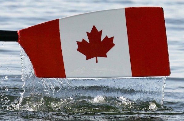 Water falls from a Canadian blade of an oar in this file photo.PAUL HANNA/Reuters