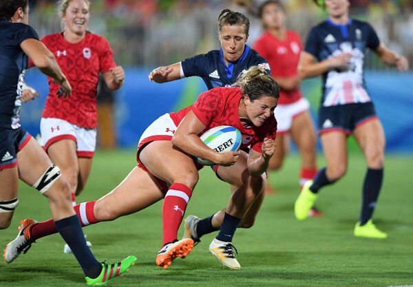 Canada’s Kelly Russell runs in a try during the women’s rugby sevens bronze medal match against Great Britain at the Rio Olympics in August, 2016.Sean Kilpatrick/The Canadian Press