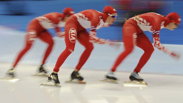 Canada's Christine Nesbitt, Brittany Schussler and Cindy Klassen compete during the women's team pursuit race at the World Single Distances Speed Skating Championships in Inzell, southern Germany, on Sunday March 13, 2011. (AP Photo/ Kerstin Joensson)Kerstin Joensson/The Associated Press