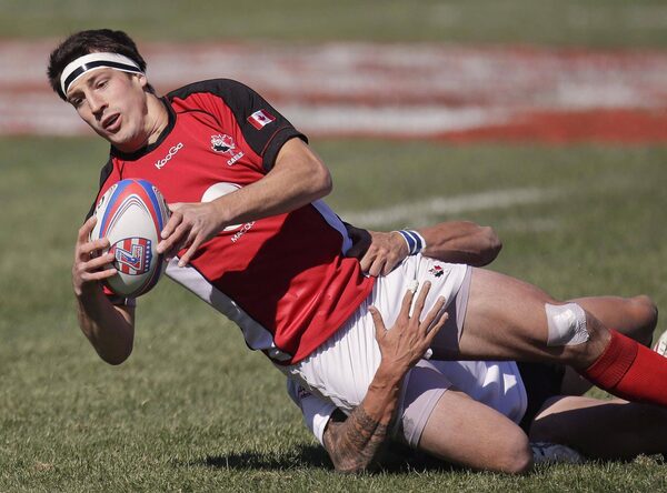 Canada’s Thyssen De Goede, left, will start at flanker and has already represented Canada in sevens and played for the Canadian under-20 team.Julie Jacobson/The Associated Press