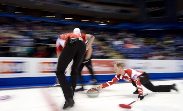 Canada skip Brad Jacobs makes a shot at the World Men's Curling Championship in Victoria, B.C. Monday, April 1, 2013. The 2017 tournament will be held in Edmonton.JONATHAN HAYWARD/The Canadian Press