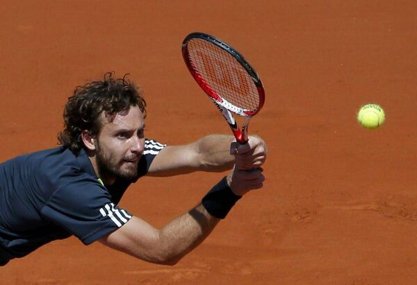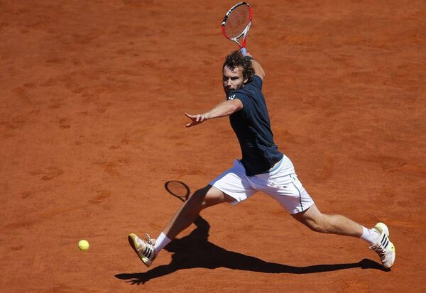 Ernests Gulbis of Latvia returns the ball to Novak Djokovic of Serbia during their men's semi-final match at the French Open tennis tournament at the Roland Garros stadium in Paris June 6, 2014.GONZALO FUENTES/Reuters