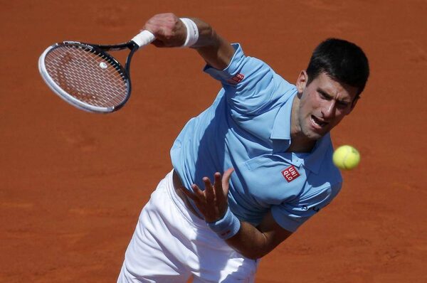 Novak Djokovic of Serbia serves to Ernests Gulbis of Latvia during their men's semi-final match at the French Open tennis tournament at the Roland Garros stadium in Paris June 6, 2014.GONZALO FUENTES/Reuters