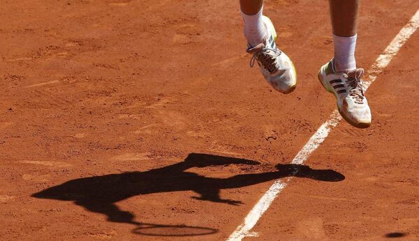 Novak Djokovic of Serbia casts his shadow as he serves to Ernests Gulbis of Latvia during their men's semi-final match at the French Open tennis tournament at the Roland Garros stadium in Paris June 6, 2014.JEAN-PAUL PELISSIER/Reuters