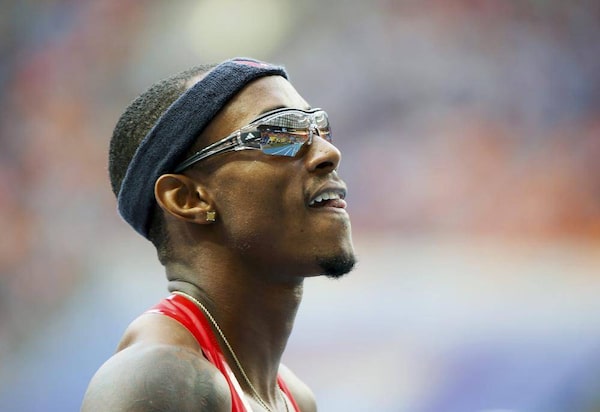 Tony McQuay of the U.S. looks at the scoreboard after the men's 400 metres semi-final heat event of the IAAF World Athletics Championships at the Luzhniki Stadium in Moscow, August 12, 2013.LUCY NICHOLSON/Reuters