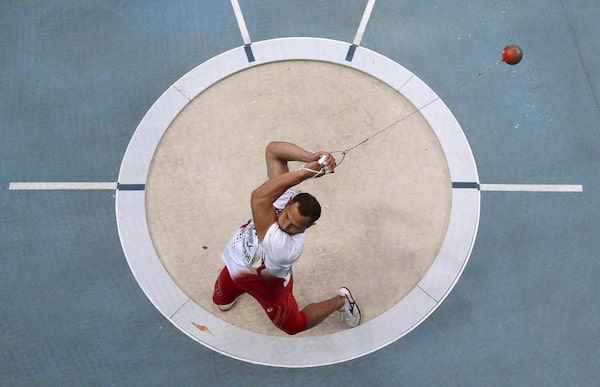 Koji Murofushi of Japan competes in the men's hammer throw final during the IAAF World Athletics Championships at the Luzhniki stadium in Moscow August 12, 2013.FABRIZIO BENSCH/Reuters