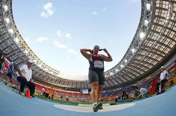 Christina Schwanitz of Germany competes in the women's shot put final during the IAAF World Athletics Championships at the Luzhniki stadium in Moscow August 12, 2013.KAI PFAFFENBACH/Reuters