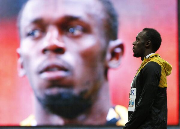 Jamaica's Usain Bolt stands on the podium with his gold medal during the medal ceremony for the men's 100-metres at the World Athletics Championships in the Luzhniki stadium in Moscow, Russia, Monday, Aug. 12, 2013.The Associated Press