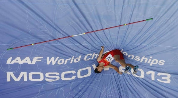 Xue Changrui of China competes during the men's pole vault final at the IAAF World Athletics Championships at the Luzhniki stadium in Moscow August 12, 2013.FABRIZIO BENSCH/Reuters