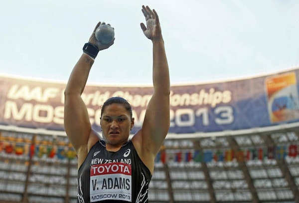 Valerie Adams of New Zealand competes in the women's shot put final during the IAAF World Athletics Championships at the Luzhniki stadium in Moscow August 12, 2013.KAI PFAFFENBACH/Reuters