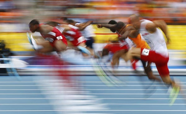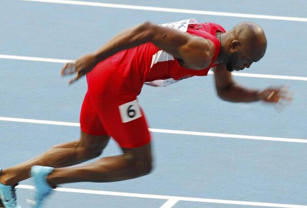 LaShawn Merritt of the U.S. leaves the starting block in his men's 400 metres semi-final during the IAAF World Athletics Championships at the Luzhniki stadium in Moscow August 12, 2013.GARY HERSHORN/Reuters