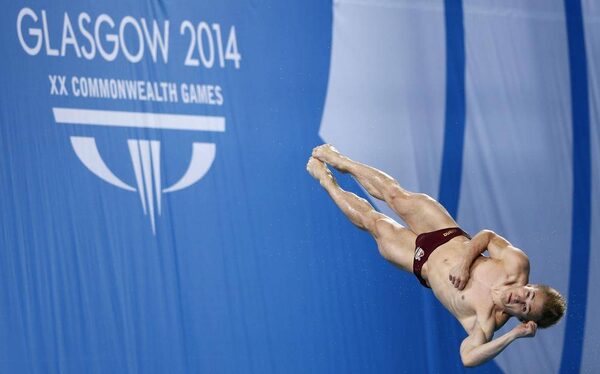 Jack Laugher of England dives during the men's springboard preliminares at the 2014 Commonwealth Games in Edinburgh, Scotland, July 30, 2014.STEFAN WERMUTH/Reuters