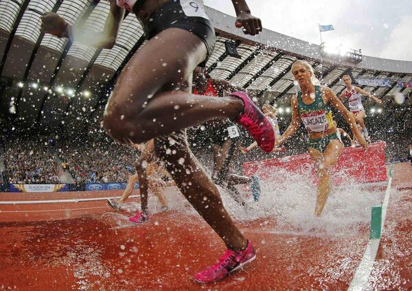 Athletes take part in Women's 3000m steeplechase final at the 2014 Commonwealth Games in Glasgow, Scotland, July 30, 2014.SUZANNE PLUNKETT/Reuters